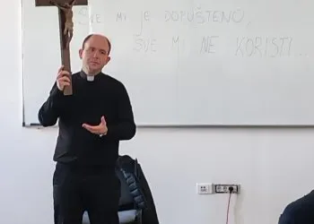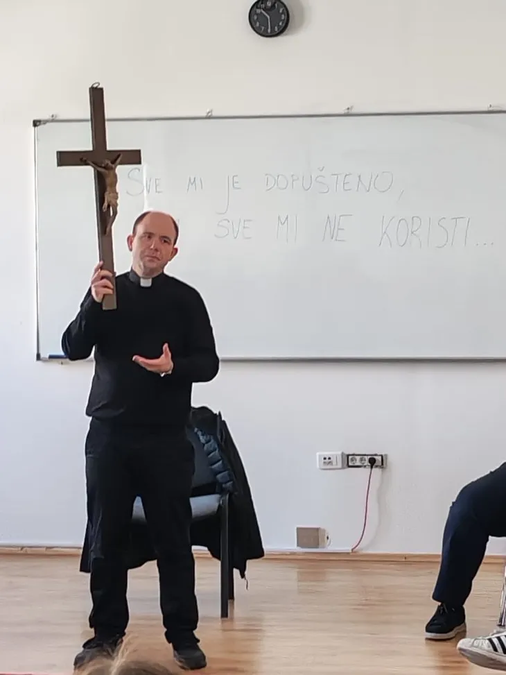 Skupina učenika koji pohađaju rimokatolički vjeronauk iz svih razreda naše gimnazije dobrovoljno se odazvala u subotu, 21. veljače na jednodnevni korizmeni duhovni susret na temu: "Sve nam je dopušteno, ali sve nam ne koristi". Uz vjeroučitelja don Petra i ravnatelja gimnazije Tomislava, nadahnuti nagovor na biblijsku i životnu temu održao je katedralni župnik don Marin Lučić. Učenici su pozorno slušali i sudjelovali te su kasnije pristupili sakramentu svete ispovijedi te bili na zajedničkoj svetoj misi u prekrasnoj crkvi Gospe od Ruzarija u sklopu dominikanskog samostana. U nadahnutom nagovoru i propovijedi don Marin je uz mnoštvo konkretnih primjera iz svakodnevnog života i borbi mladih ljudi govorio o velikoj Božjoj ljubavi i divnom planu kojeg Bog ima za svakoga čovjeka, te o lažnim zavodljivim zamkama koja nude kratkotrajno i beskorisno zadovoljstvo, a čovjeka ili ostavlja praznog i osiromašenog ili ga vodi duboko u pakao raznih ovisnosti.